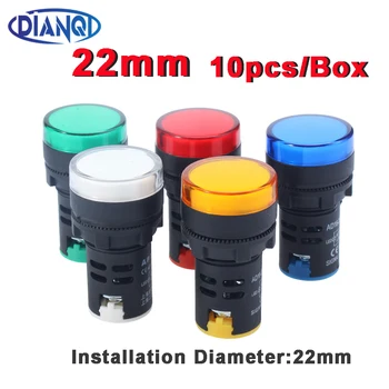 Luz indicadora LED impermeável, sinal de montagem do painel, vermelho, azul, verde, branco, amarelo, 22mm, 12V, 24V, 220V, 10pcs por lote, AD16-22DS