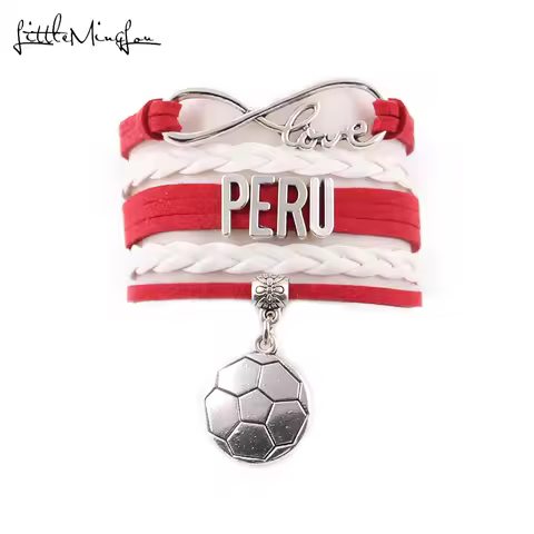 작은 Minglou 무한대 사랑 페루 팔찌 축구 매력 가죽 브레이드 랩 국가 남성 팔찌 & 팔찌 여성 보석