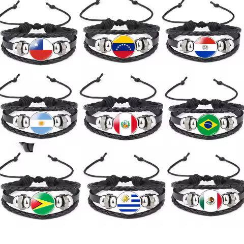 2024 남성용 남미 국기 팔찌 베네수엘라 칠레 아르헨티나 볼리비아 콜롬비아 페루 브라질 참 가죽 다층 팔찌