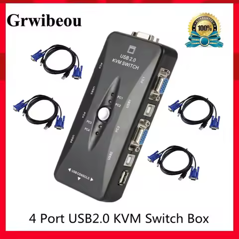 Grwibeou 4 Port KVM Switch USB 2.0 VGA Splitter Mouse Printer Keyboard Pendrive Share Switcher 1920*1440 VGA Switch Box Adapter