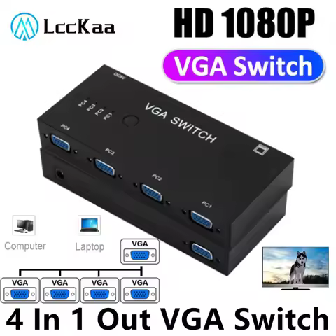 LccKaa 4 In 1 Out VGA Switcher 4 Port VGA Manual Sharing Selector Switch Box VGA to VGA Switcher for PC TV Box Monitor Projector