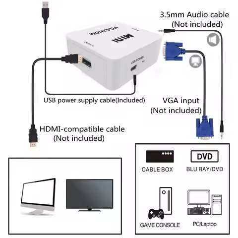 LccKaa 1080P VGA to HDMI-compatible Converter Adapter Box With Audio Output VGA to HDMI Adapter for PC laptop to HDTV Projector