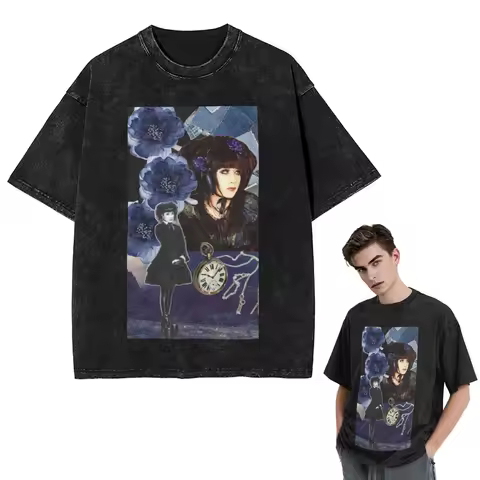 Streetwear T-Shirts Malice Mizer Visual Kei Japanese Rock Band Gothic Washed T Shirt Short Sleeve Hip Hop T-Shirt Tops Tees