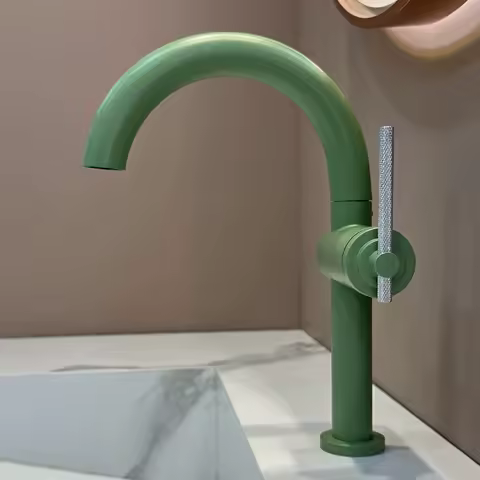Green Brass Bathroom Sink Mixer Tap Hot Cold Water Basin Faucet