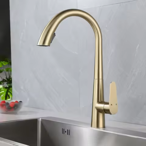 Kitchen Faucet Pull Out Single Lever Brass Rotation Hot and Cold Brush Gold Water Saving Decked Sink Mixer Tap New Fashion